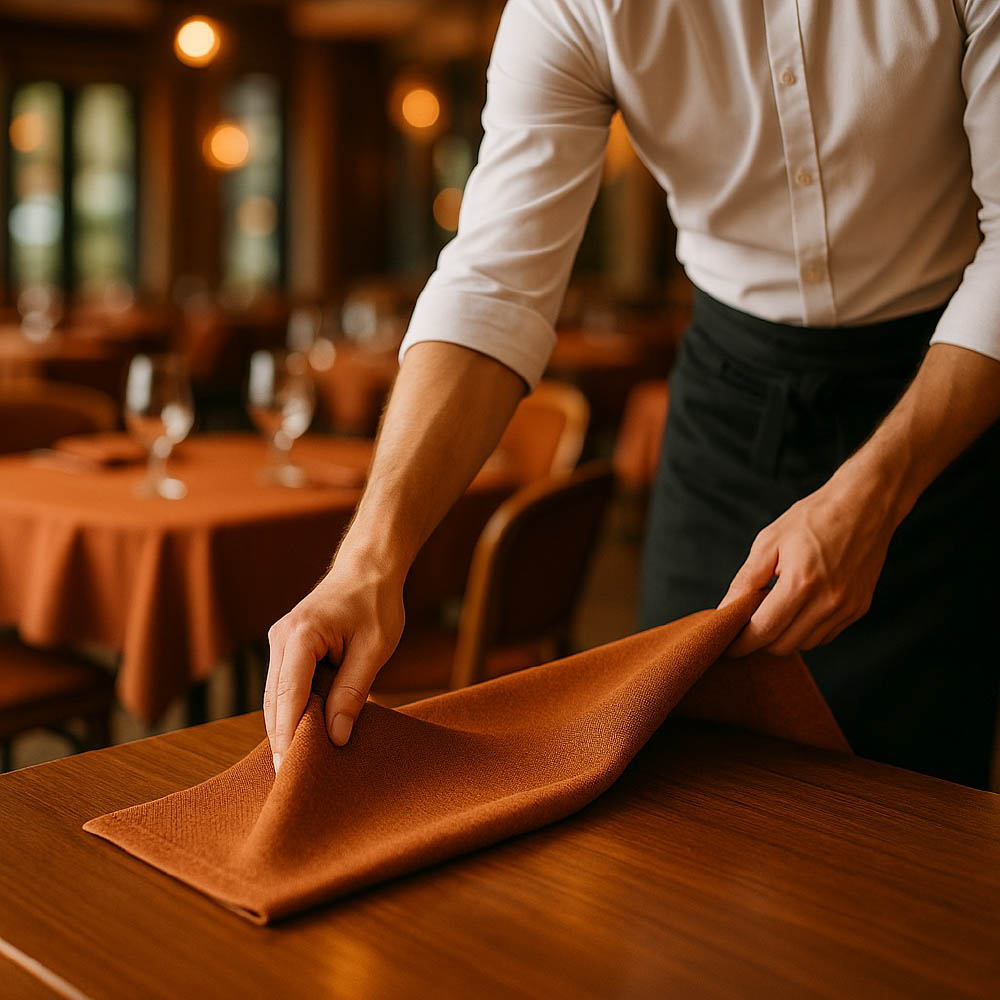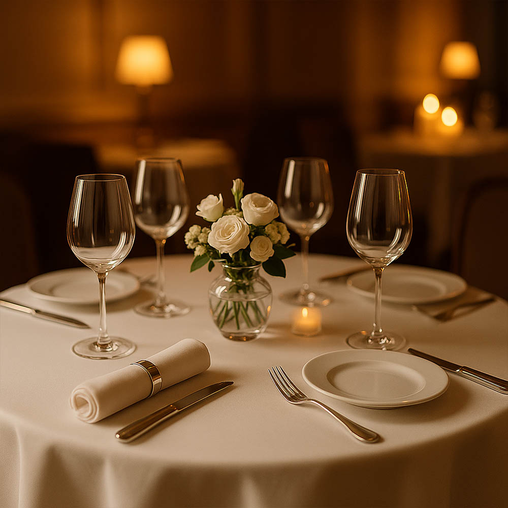 | Скатерть | Основа сервировки: защищает столешницу, задаёт визуальный стиль зала |